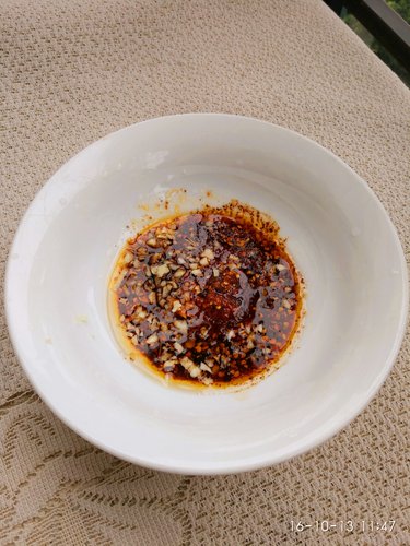 步骤5、面碗一个,加入酱油,白糖,醋,熟油海椒,花椒面,蒜泥,味精,芝麻油,猪油,熟芝麻