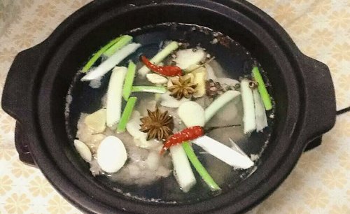 难度:一般,配方:大骨头、花椒大料,步骤:1.把骨头在开水里汆一下, 2.到入砂锅足够的水。 3.放入各种调料。 4.三小时后,浓汤。调整味儿。