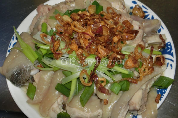 步骤3、等待水滚放去仿鸡腿,加盖煮约五分钟熄火闷15分钟利用闷的时间切红葱头