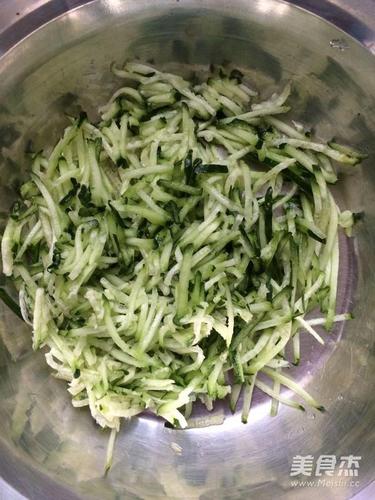 步骤2、将黄瓜切成细丝,放入盆中