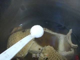 步骤3、煮肉料放入锅中,加水煮开后放入金钱肚,大火煮开后小火煮半小时