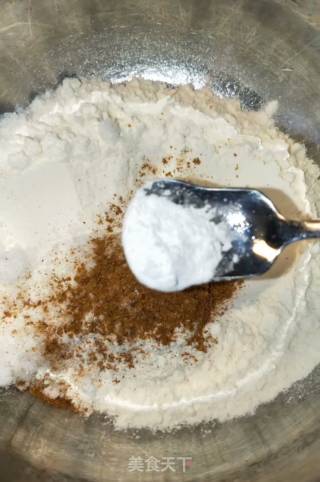 步骤2、克面粉加1克盐,10克白糖,1克五香粉,1克麦芽糖,1克泡打粉,5克食用油,40克水。