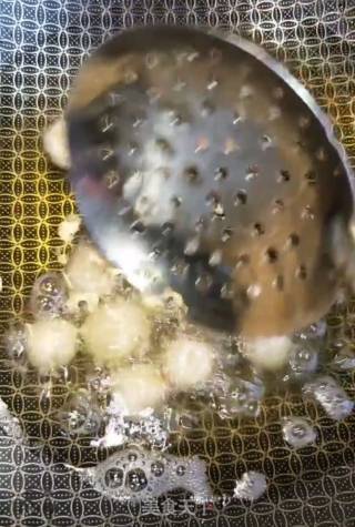 步骤5、油温五成热下锅炸制金黄色捞出。