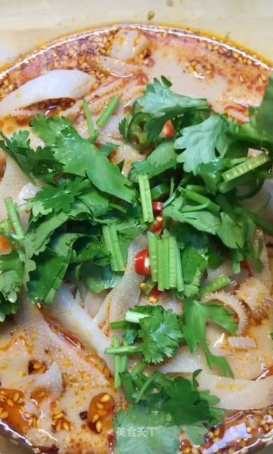 步骤7、百叶下锅焯烫10秒钟,捞出冲凉放入料汁中。