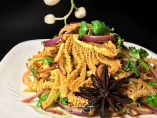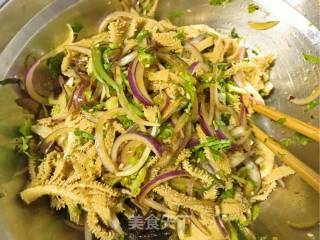 步骤9、凉透的牛百叶和洋葱混合。