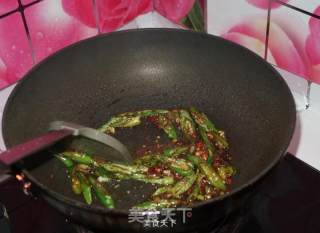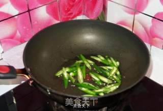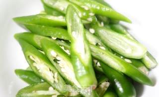 步骤4、油热后,倒入尖椒,快速翻炒。