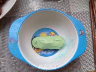 步骤6、两滴斑斓香油用温水化开加糯米粉混合成绿色糯米团