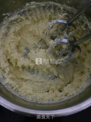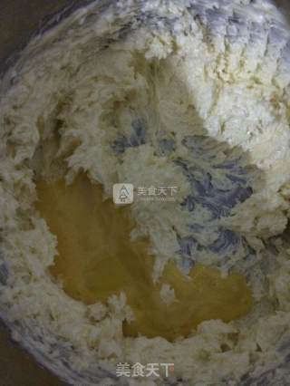 步骤3、鸡蛋液分三次加入黄油中,搅拌均匀