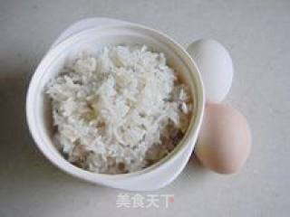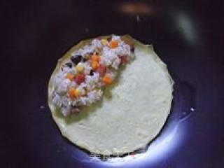 步骤10、在蛋皮的1/2处铺上炒好的米饭。