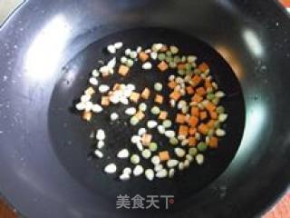 步骤6、再下入焯好水的青豆、玉米、胡萝卜翻炒。