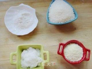 步骤1、低筋面粉、椰丝、白糖、奶粉称量好