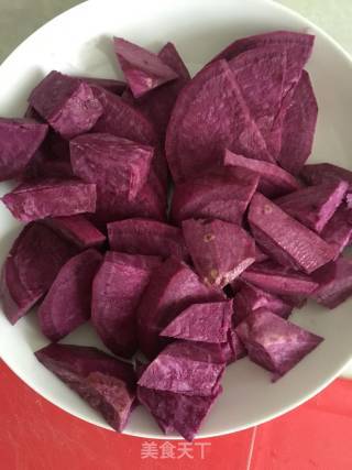 步骤1、紫薯去皮切块,上锅煮熟