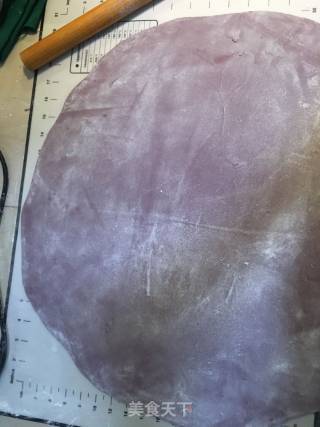 步骤3、把面团擀成薄片,撒上适量淀粉防止粘连