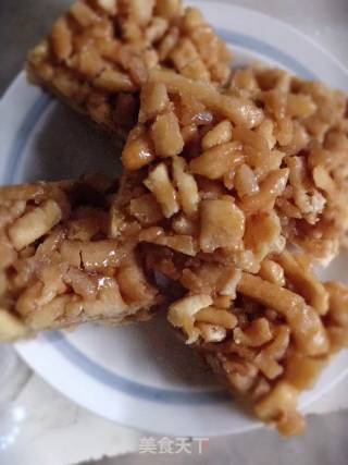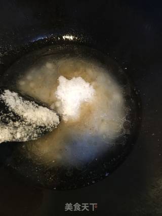 步骤6、锅中加入适量水,油,糖熬成拉丝的状态,倒入炸好的面,迅速翻匀,