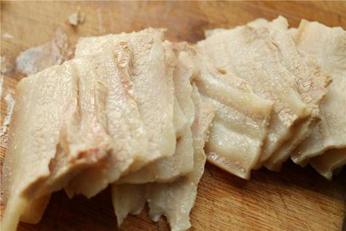 步骤8、煮好的肉,切均匀的薄片。