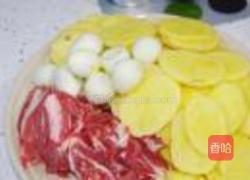 步骤1、原料~~土豆切片,肉也是肉片~~~备用。