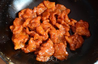步骤9、放入炸好的肉片。