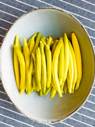 步骤1、夏天虽然很热,但也赋予了我们多样的蔬菜瓜果。黄花菜只有这两个月才能吃到,所以抓紧时间咯~记得黄花菜要把顶上的小头头摘掉。