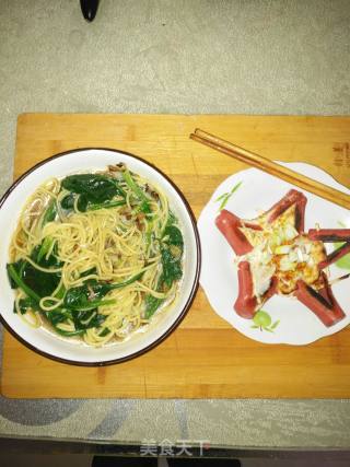 步骤9、香肠煎蛋就做好,可以开吃了。