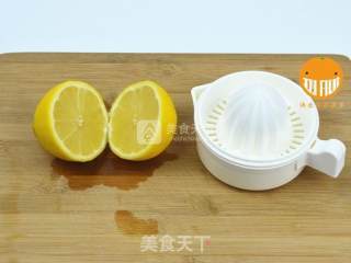 步骤2、将柠檬洗净、对切后榨汁,取50g,备用;