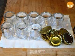 步骤5、取出沥干水,倒扣果酱瓶,备用;