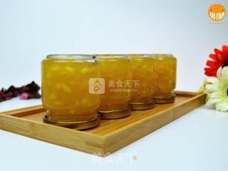 步骤8、果酱变浓稠即关火;将果酱装进瓶内,盖紧瓶盖后趁热倒扣,倒扣30分钟后洗净瓶身,置于室温3~7天再放入冰箱中冷藏;
