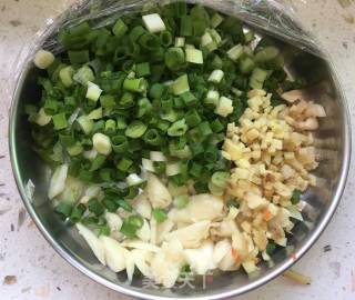 步骤2、葱姜蒜切末备用。