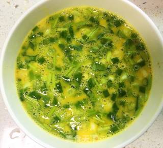 步骤5、鹅蛋打散,加入香葱和香菜,加半调味勺盐,再加入1调味勺胡椒粉,打匀。