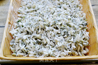步骤4、拌均匀,使槐花每个都能拌上面粉。