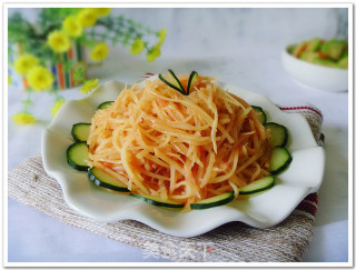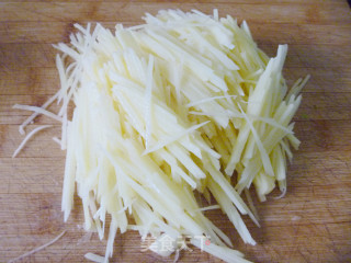 步骤2、土豆丝切成细丝,也可擦成丝,不过切的更好吃一些。