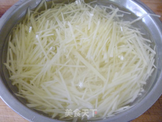步骤3、土豆丝切好要及时放入水中泡一下去掉一些淀粉。