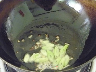 步骤5、炒锅热锅凉油,放入花椒煸炒香了,去掉花椒,然后放入葱姜煸炒。