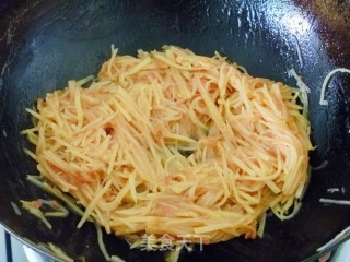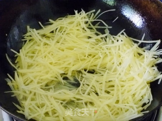 步骤6、然后放入土豆丝翻炒。