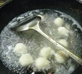 步骤3、将爆汁小鱼丸拆开包装取出一半下入清水中煮开、捞出。